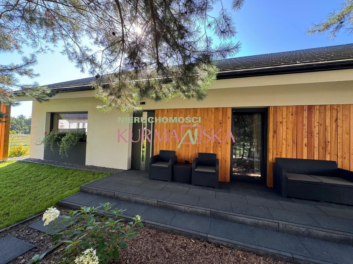 Budynek mieszkalny jednorodzinny, parterowy z garażem dwustanowiskowym w bryle budynku. Nieruchomość wybudowana w 2022r w technologii tradycyjnej, dach dwuspadowy (dachówka ceramiczna). Projekt domu bardzo przemyślany z gustownie wykończonym wnętrzem.