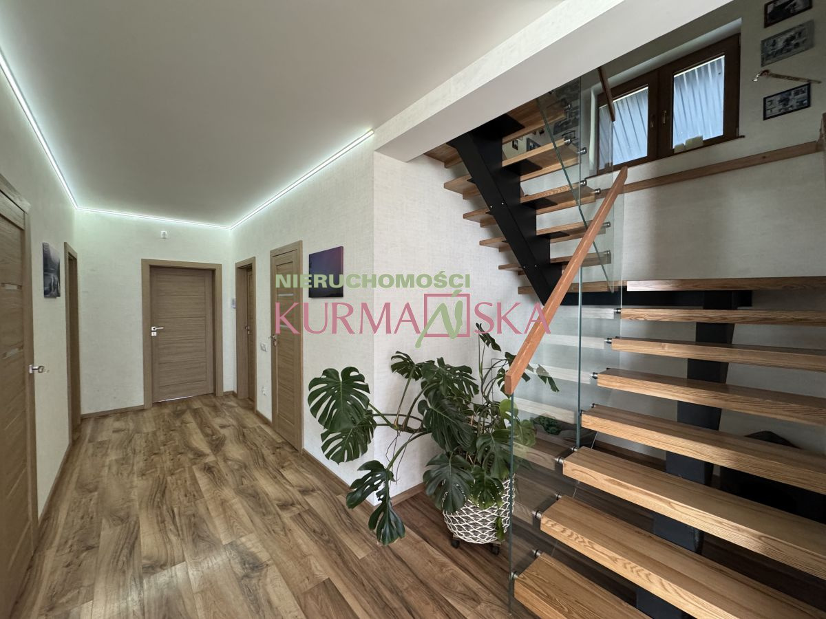 Na piętro prowadzą eleganckie schody z drewna z oświetleniem LED. Na klatce schodowej znajduje się okno z możliwością pełnego otwarcia lub uchylenia.