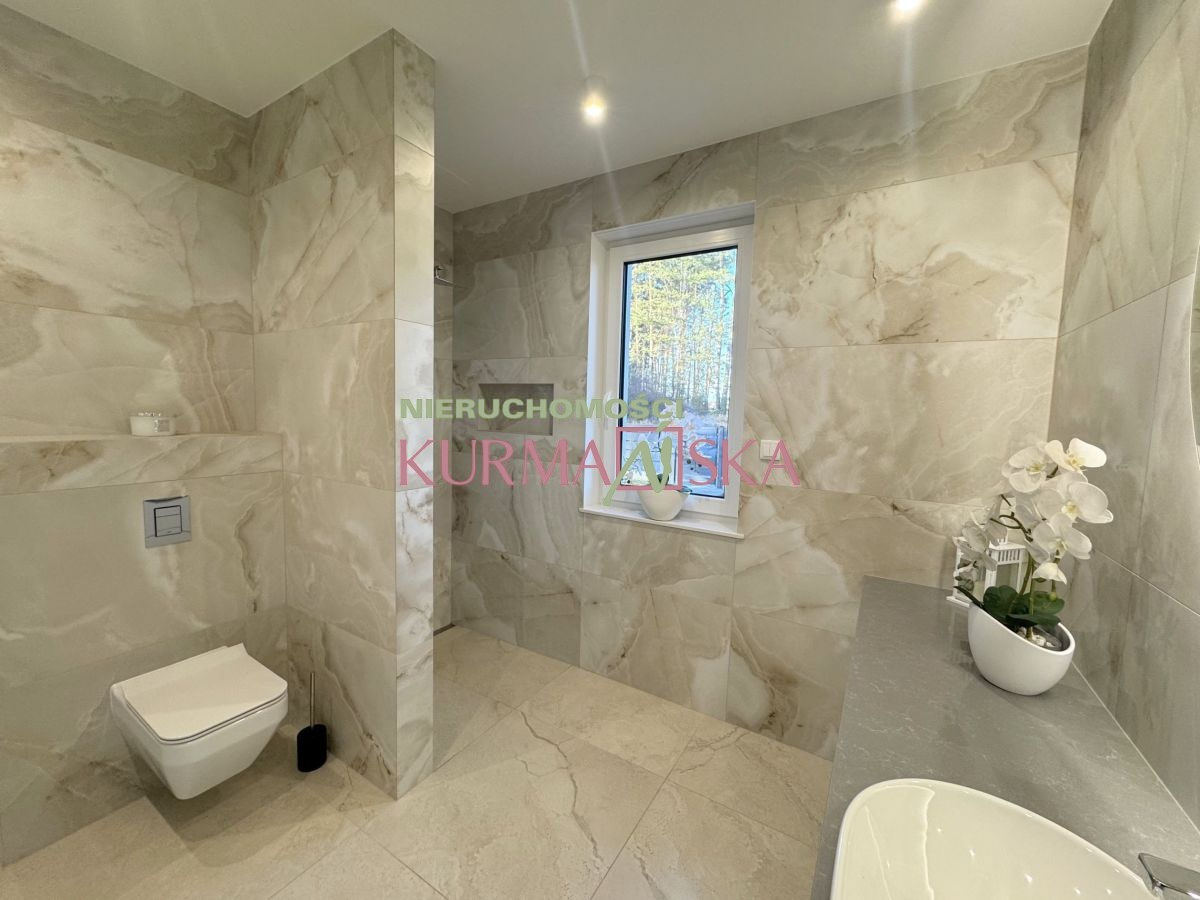 Jasna kuchnia połączona z jadalnią i przestronnym salonem(37,14mkw) z możliwością podłączenia kominka oraz wyjściem na taras (30mkw), trzy sypialnie, WC, Łazienka z WC,