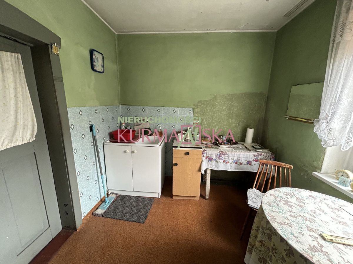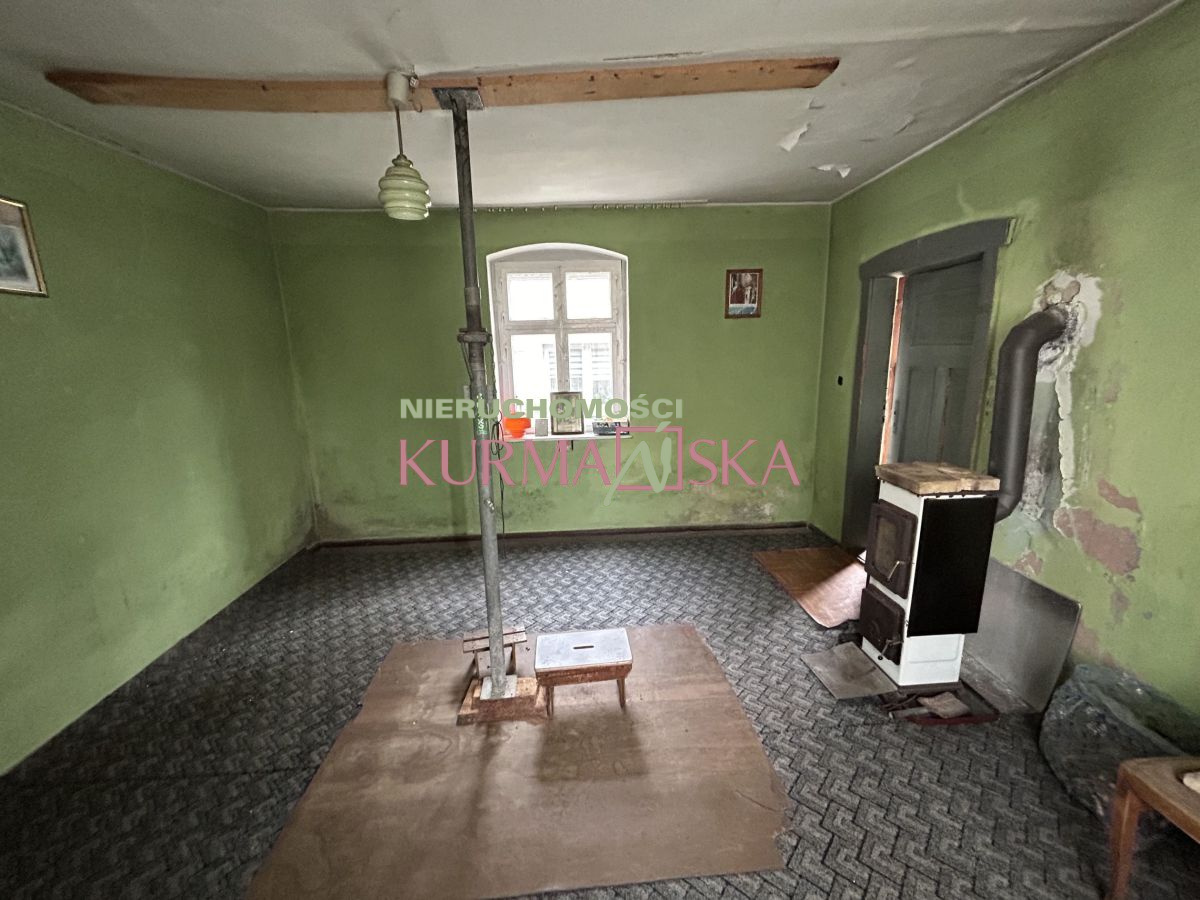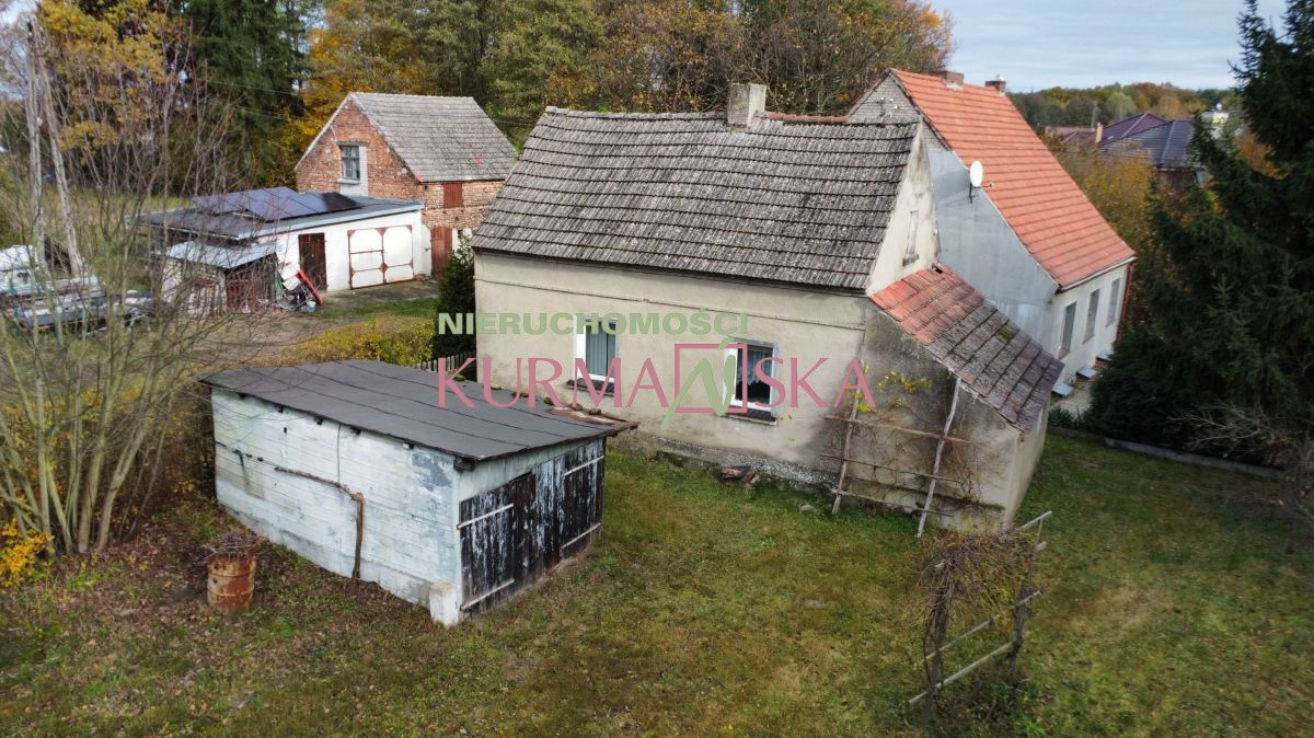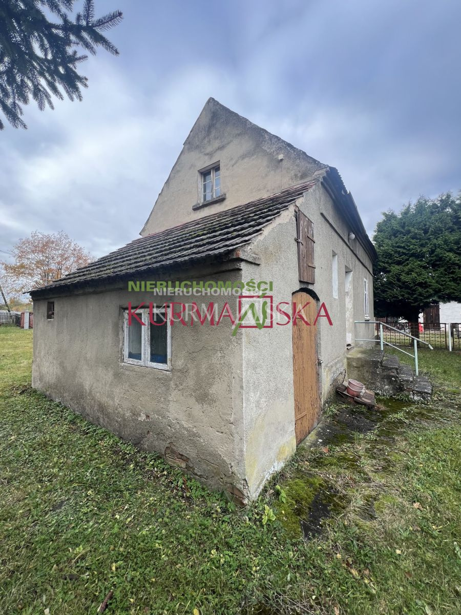 Budynek o powierzchni około 53 m2 wymaga remontu. Parter to pokój, kuchnia i korytarz. Strych z możliwością wygospodarowania dwóch pokoi. Działka w kształcie nieregularnym zabudowana budynkiem mieszkalnym i gospodarczym.