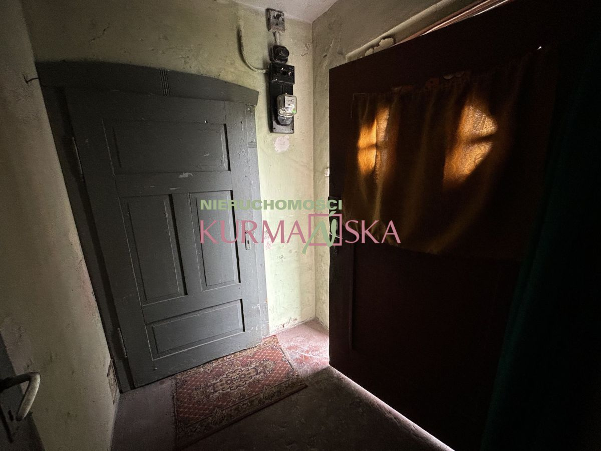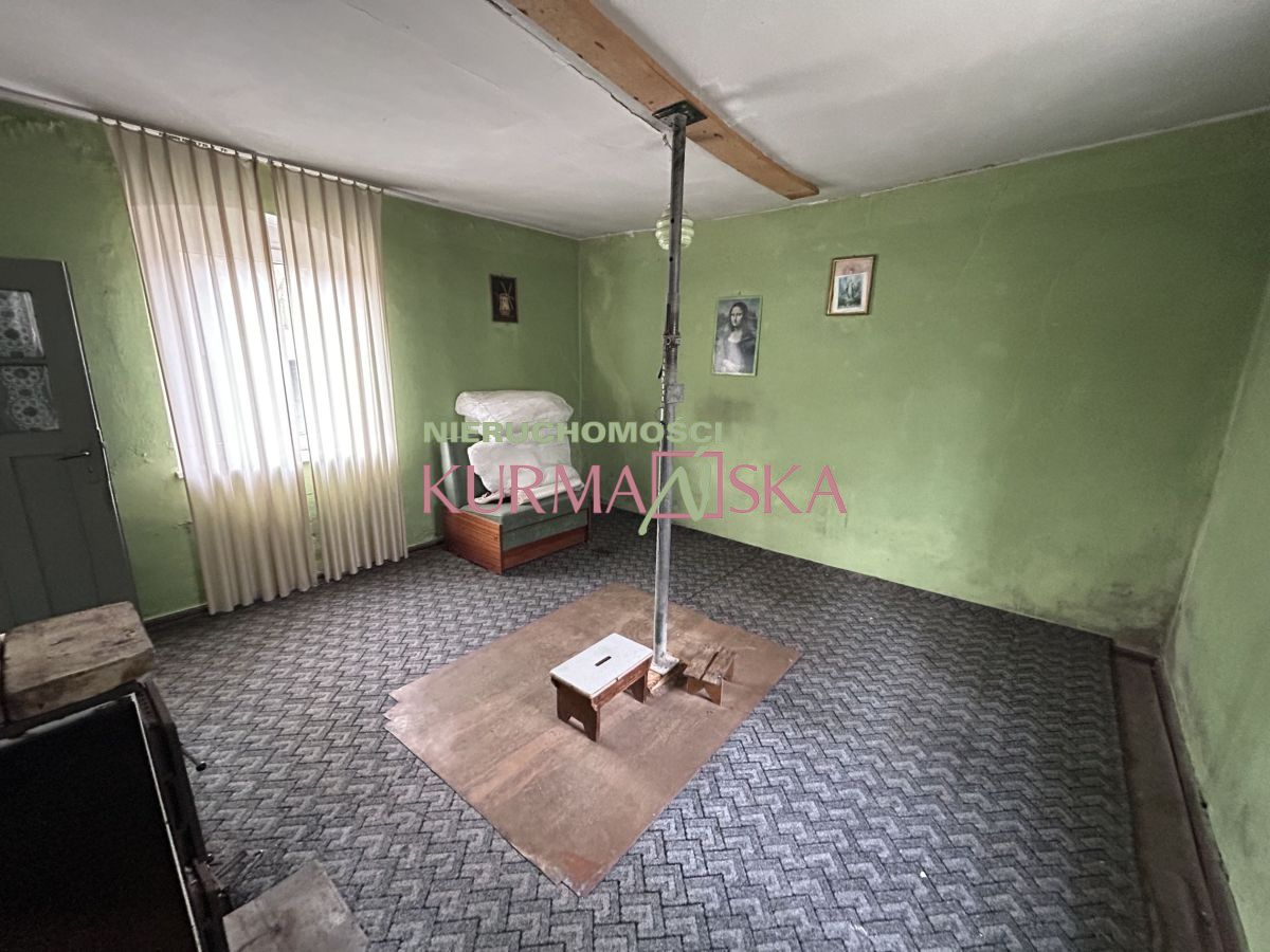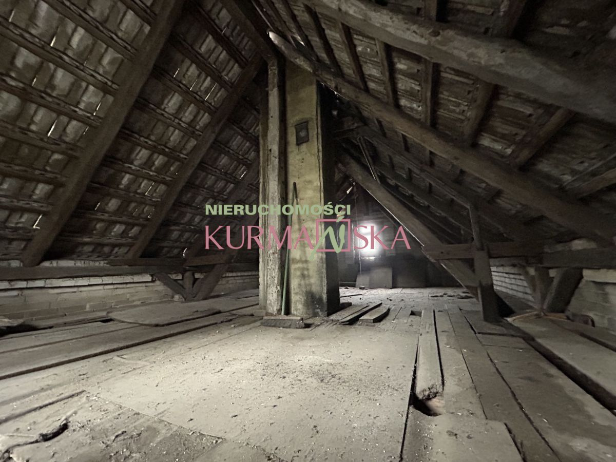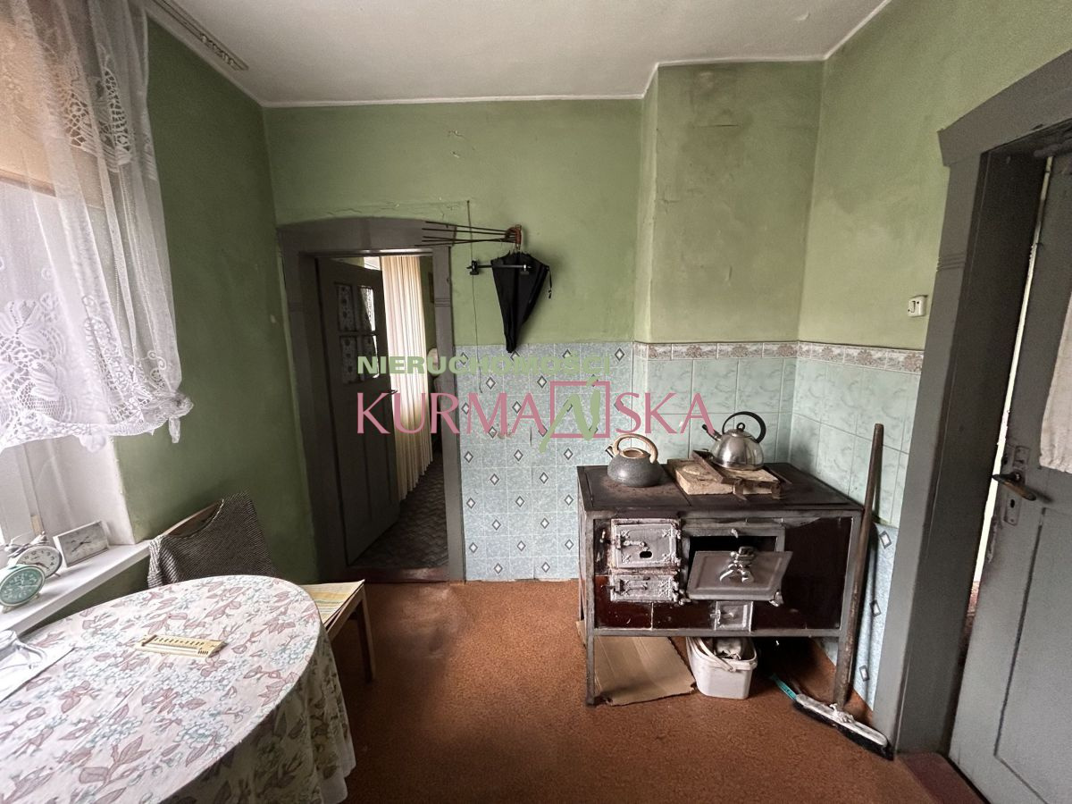 Budynek o powierzchni około 53 m2 wymaga remontu. Parter to pokój, kuchnia i korytarz. Strych z możliwością wygospodarowania dwóch pokoi. Działka w kształcie nieregularnym zabudowana budynkiem mieszkalnym i gospodarczym.