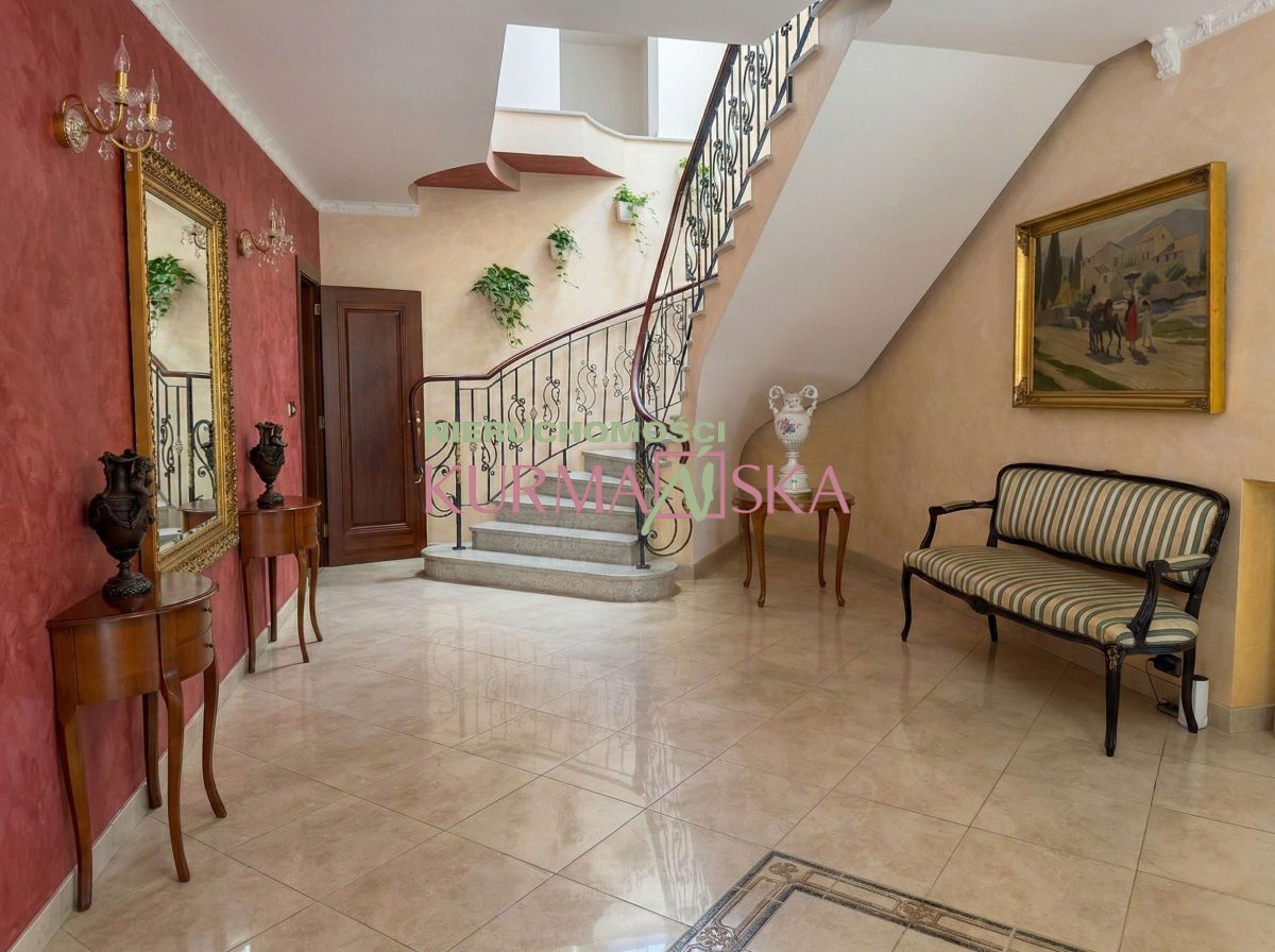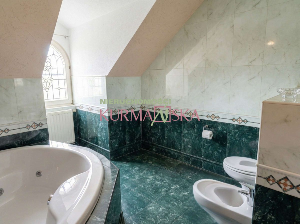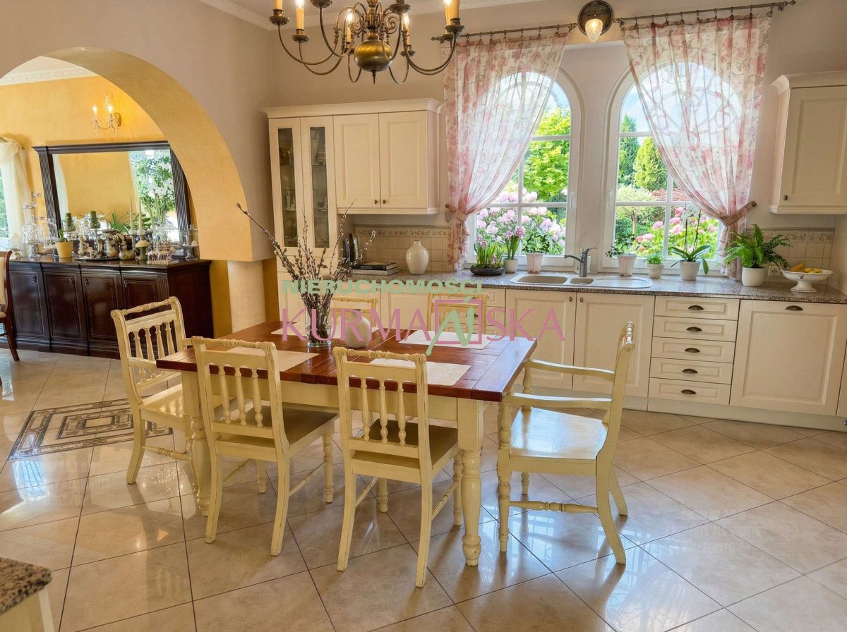 Nieruchomość została zaprojektowana indywidualnie i wybudowana w solidnej, tradycyjnej technologii z pełnej cegły ceramicznej. Reprezentacyjna bryła budynku przyciąga wzrok wielospadowym dachem pokrytym szlachetną dachówką ceramiczną (karpiówka) oraz eleganckimi, drewnianymi oknami o łukowych kształtach. Całość tworzy niezwykle wysmakowany projekt, łączący klasyczny styl z nowoczesną funkcjonalnością.