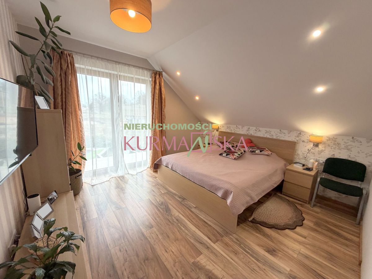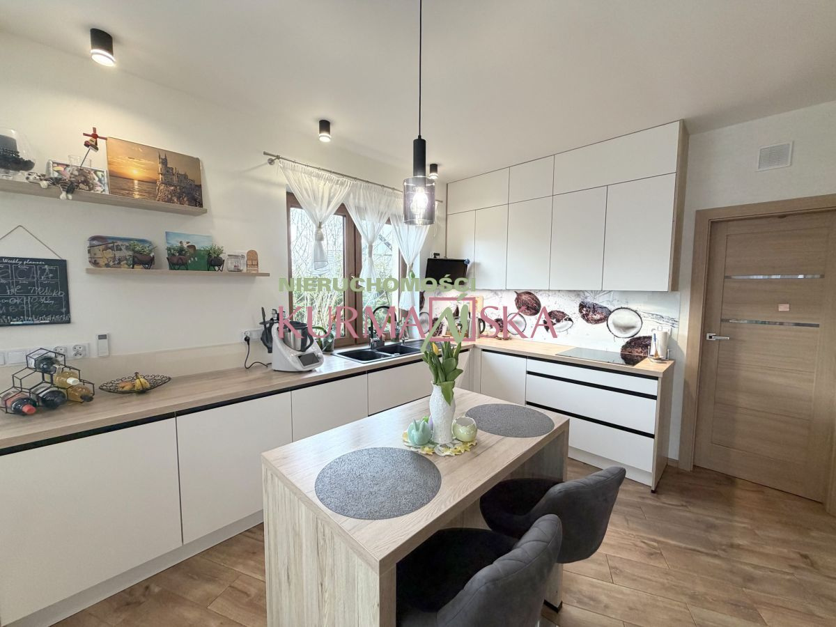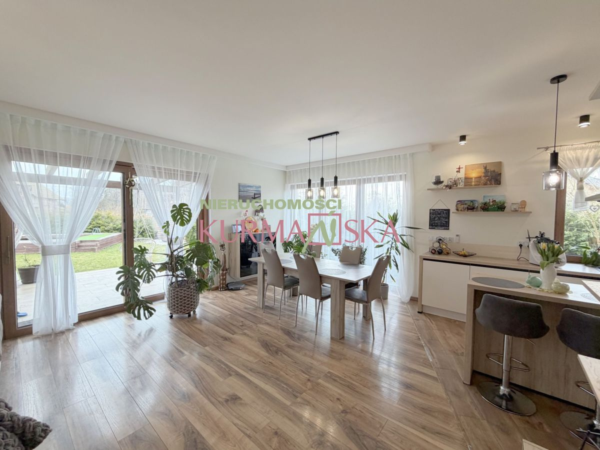 Dom bardzo słoneczny, ciepły, przytulny. Budynek parterowy z poddaszem użytkowym i garażem jednostanowiskowym w bryle budynku. Dom wybudowany w 2022 roku w technologii tradycyjnej, docieplony styropianem o grubości 20cm.