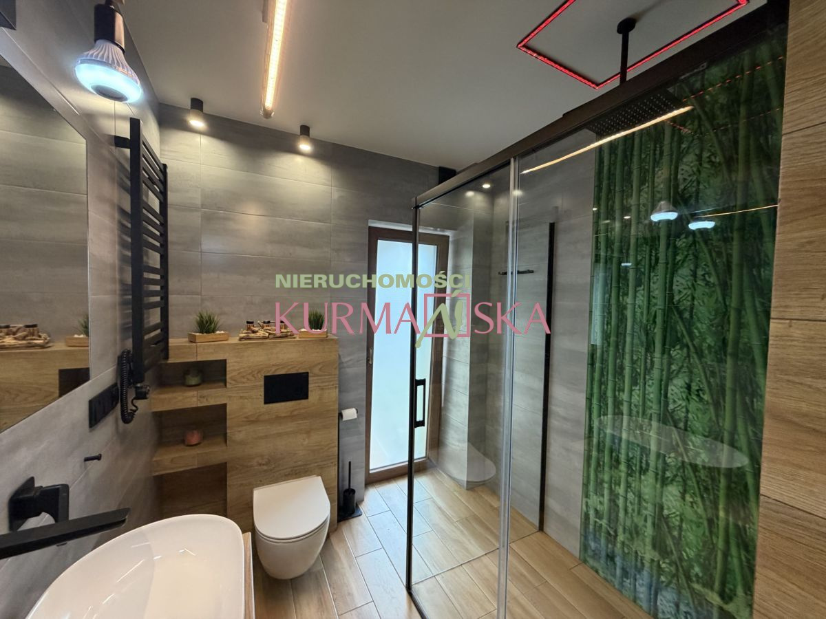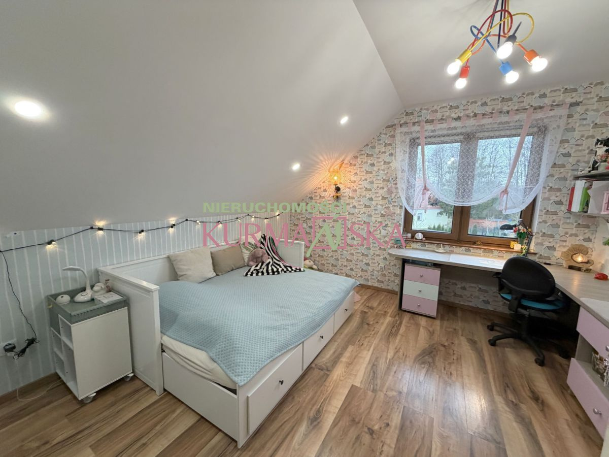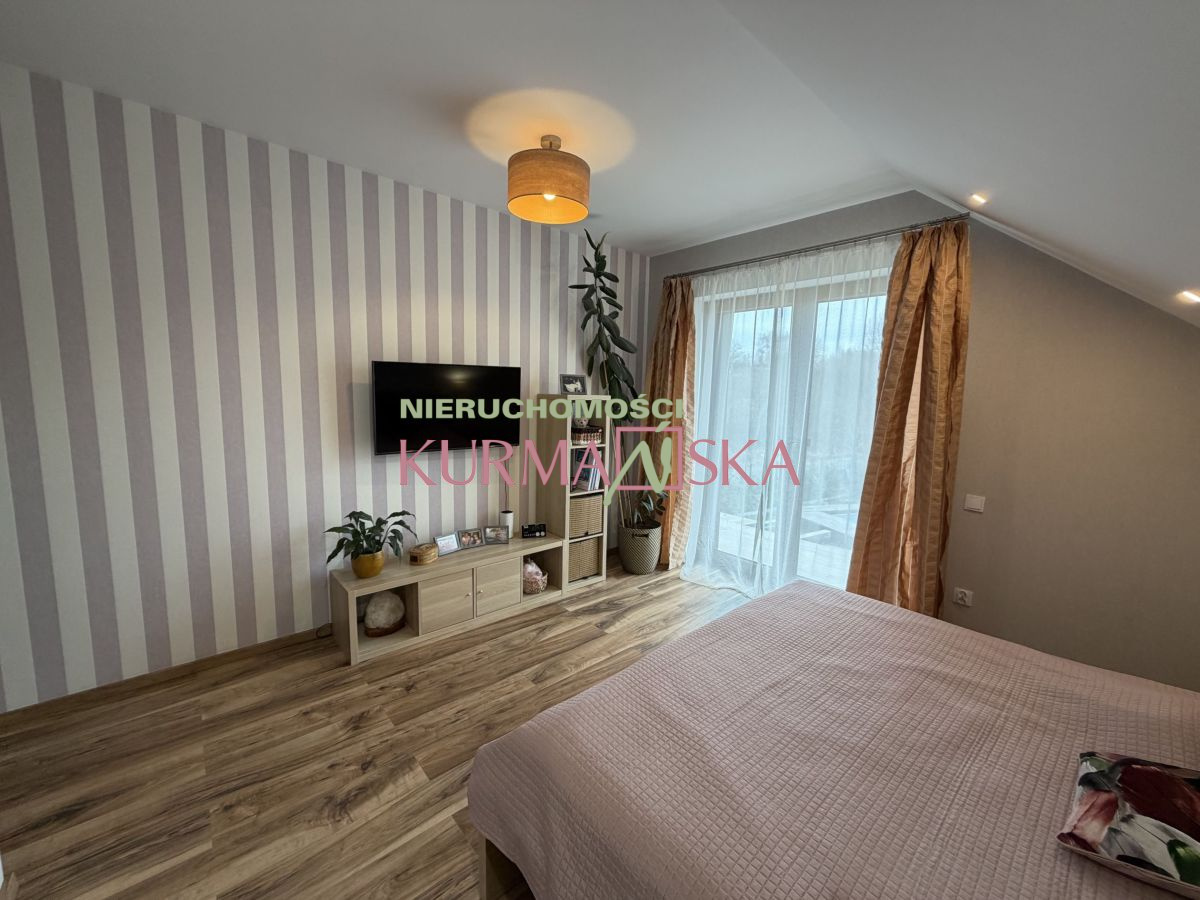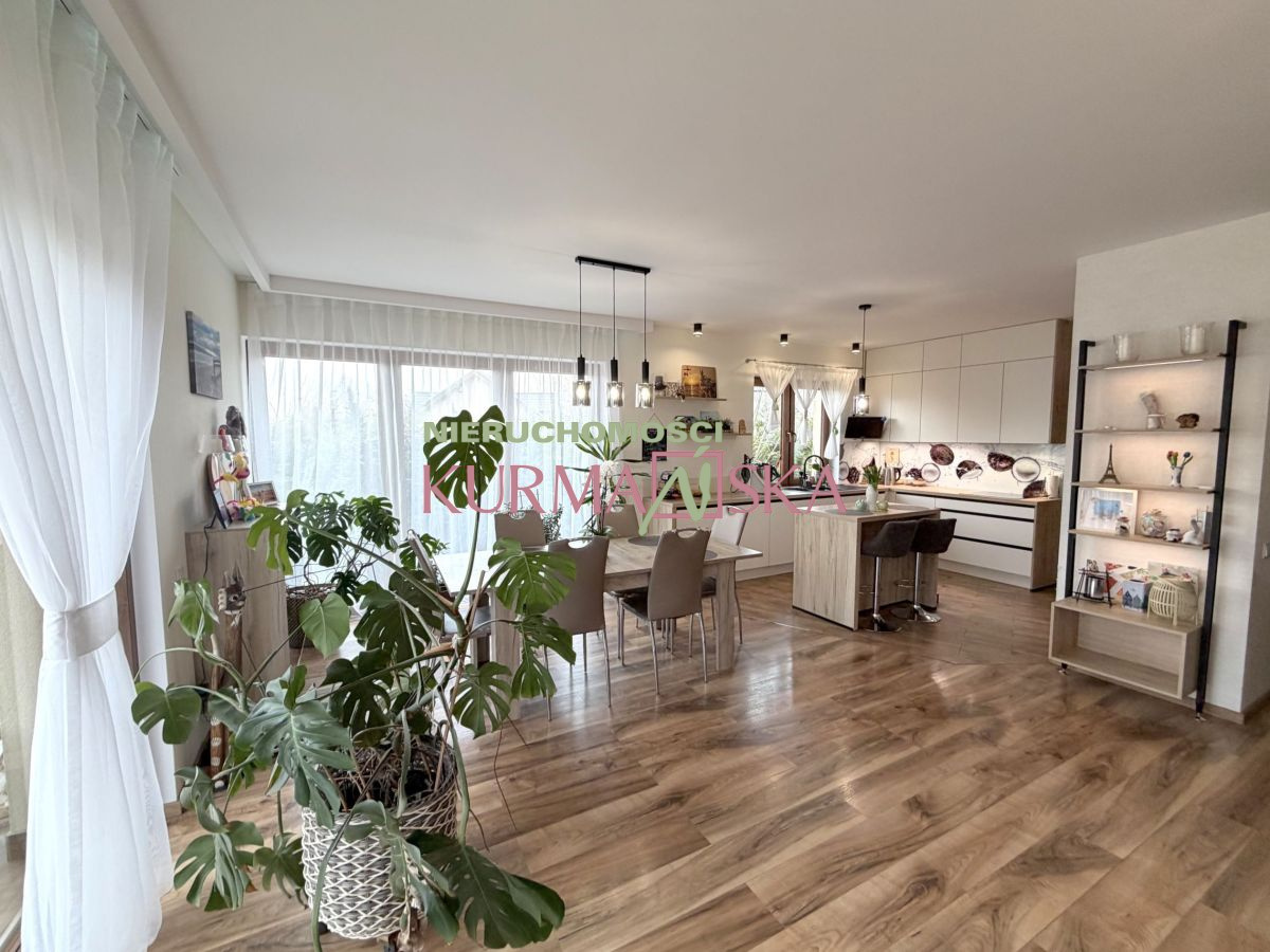 Dom bardzo słoneczny, ciepły, przytulny. Budynek parterowy z poddaszem użytkowym i garażem jednostanowiskowym w bryle budynku. Dom wybudowany w 2022 roku w technologii tradycyjnej, docieplony styropianem o grubości 20cm.