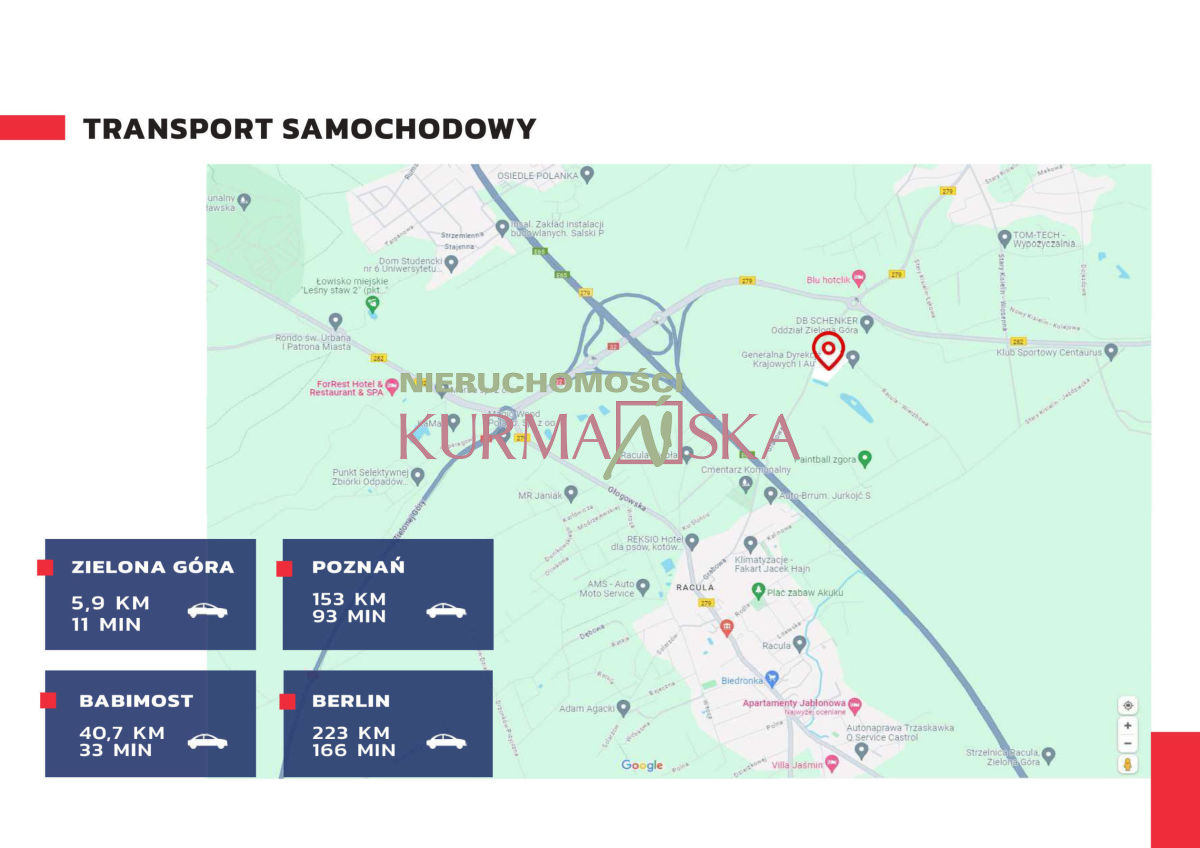 - Lokalizacja: 0,7 km od węzła drogi ekspresowej S3, co zapewnia doskonałe połączenie komunikacyjne.