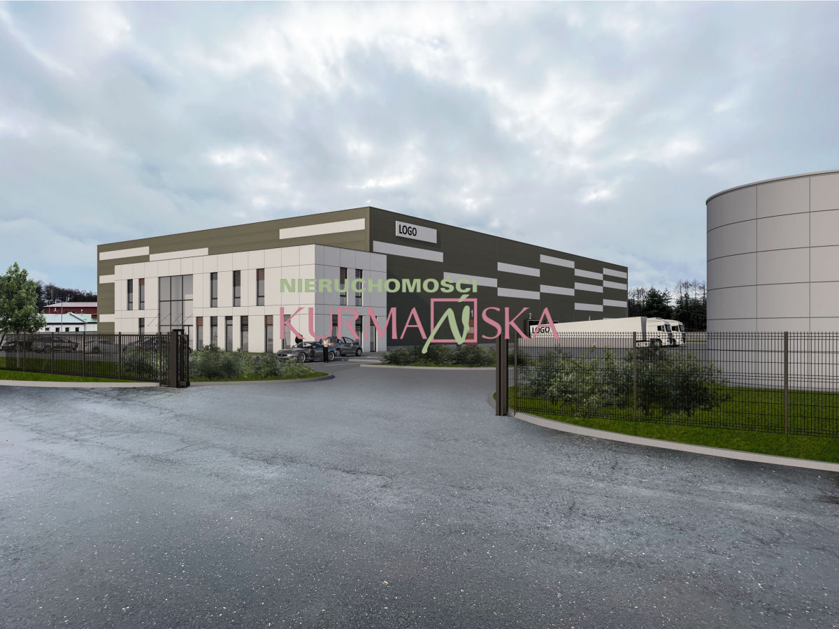W ofercie znajdują się zdjęcia przykładowej koncepcji zagospodarowania terenu zakładającego realizację obiektu o charakterze produkcyjno-magazynowym, z zapleczem socjalno-biurowym, placami manewrowymi oraz miejscami parkingowymi.