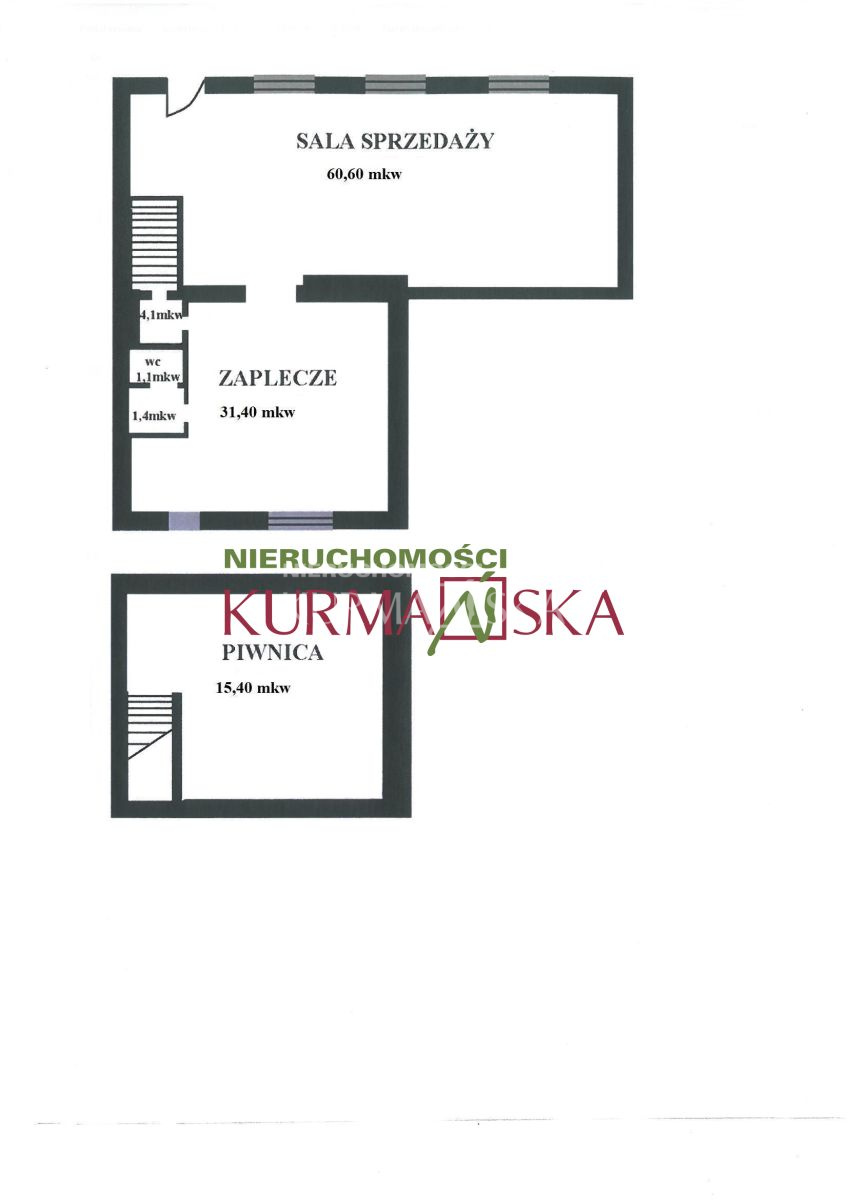 W lokalu wydzielono sale sprzedażową, zaplecze, pomieszczenie sanitarne, pomieszczenie gospodarcze oraz piwnicę o powierzchni 15,40 mkw do której prowadzą schody z pomieszczenia gospodarczego. Nieruchomość zlokalizowana jest w bezpośrednim sąsiedztwie centrum miasta z bardzo dobrym dojazdem,