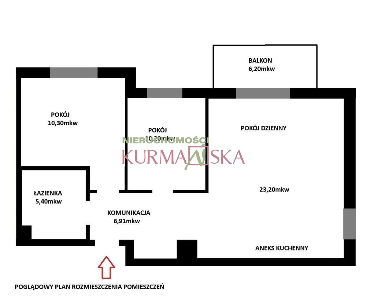 - dwóch oddzielnych pokoi (sypialnia / pokój dziecięcy / gabinet),