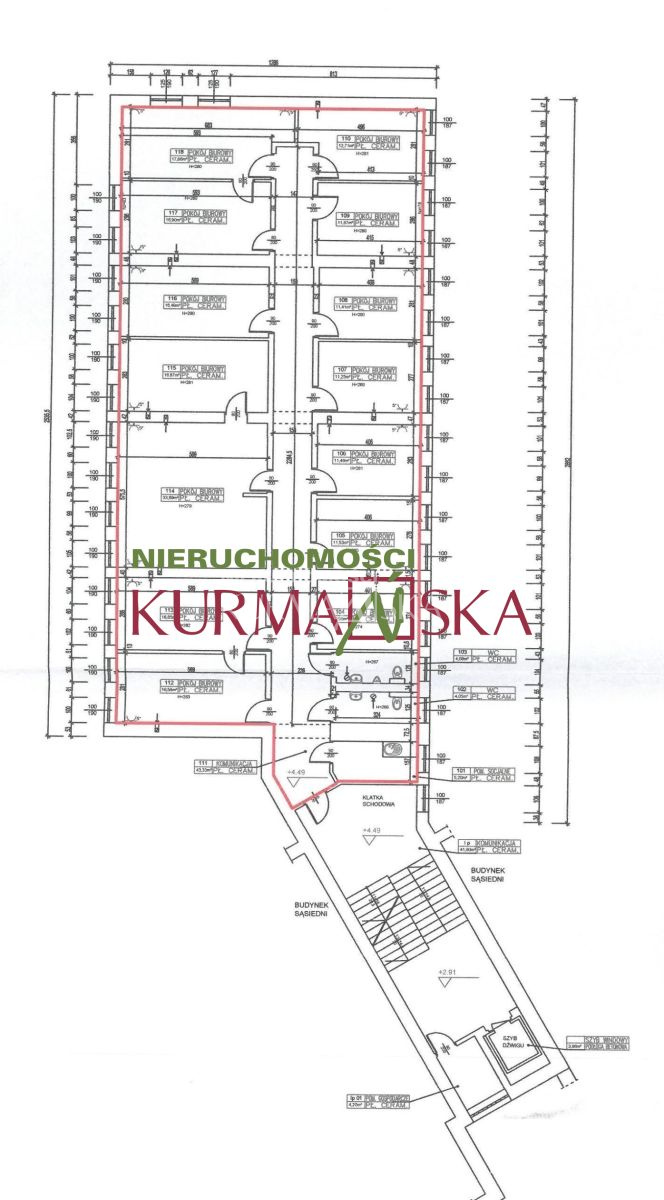 Lokal III - o powierzchni użytkowej 268,96mkw., położony na pierwszym piętrze budynku, składa się z 13 pomieszczeń biurowych, komunikacji, pomieszczenia socjalnego oraz dwóch pomieszczeń sanitarnych (wc).
