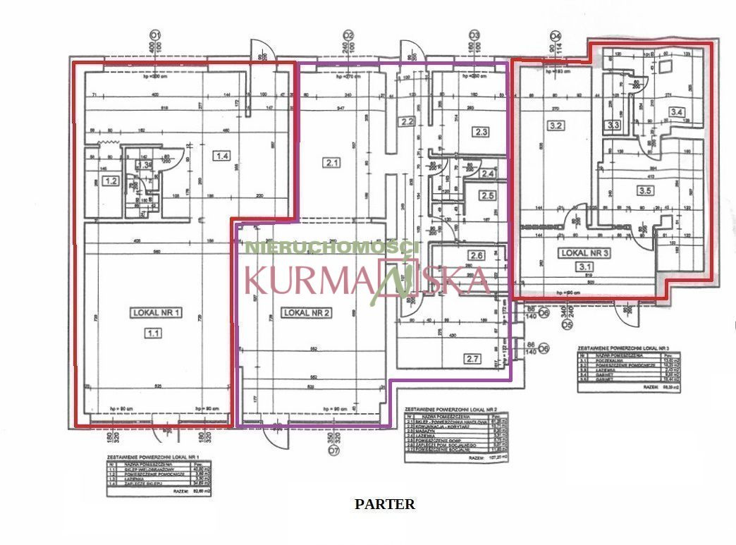 Lokal nr 1 o powierzchni 82,68mkw., składa się z sali sprzedażowej (usługowej), pomieszczenia pomocniczego, zaplecza oraz pomieszczenia sanitarnego (łazienka).