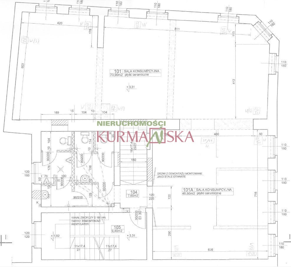 I KONDYGNACJA - 138,90mkw., wysokość pomieszczeń 3,00m, sala konsumpcyjna, kuchnia wraz z całym zapleczem.